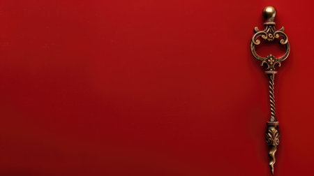 Antique key on red background with space for text