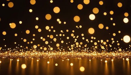 Beautiful golden bokeh lights shimmering against a dark background in a festive and cheerful atmosphere