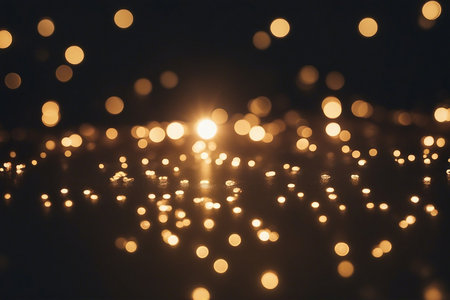 A captivating night scene featuring warm glowing lights among blurred bokeh, creating an enchanting atmosphere perfect for serene moments or festive settings.