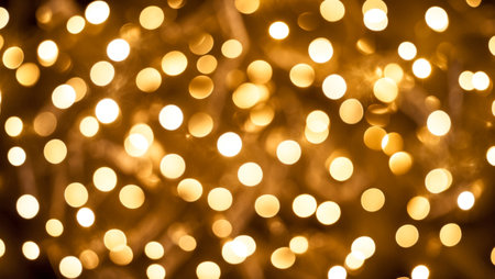 Abstract background with out-of-focus golden circles of light, evoking a sense of warmth, magic, and celebration perfect for holiday or event themes