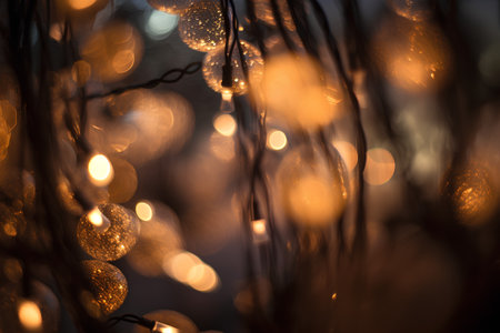 Defocused string lights create dreamy bokeh effect. Adding ambient glow to photography and backgrounds.