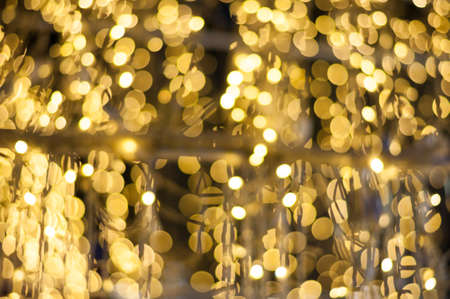 abstract blurry bokeh background of night light, Christmas party background, blurry patten in gold bright shiny, defocused disco illuminated design