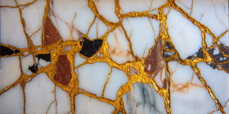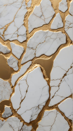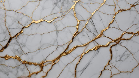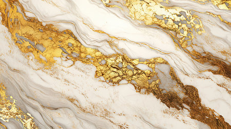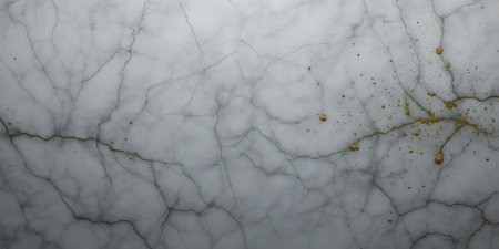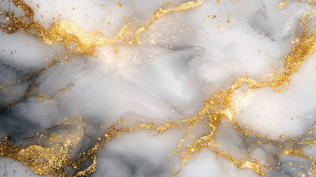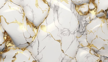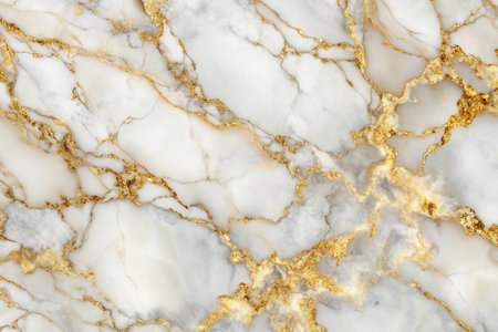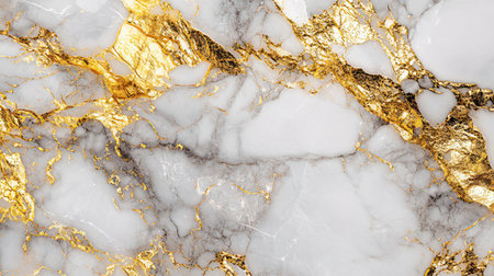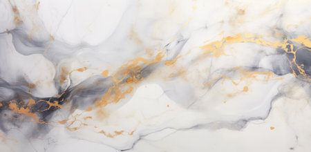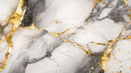 Beautiful marble slab with white and gray patterns, accented by gold veins. It highlights the natural elegance and intricate details of marble stone, AI generated image