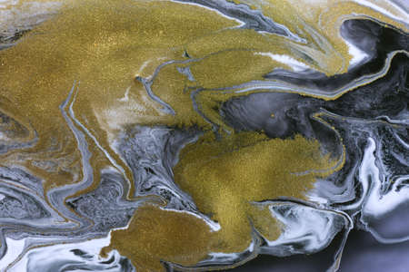 Marble abstract acrylic background. Marbling texture. Agate ripple pattern. Gold powder.