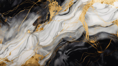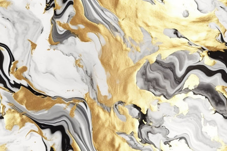 Abstract marble texture with gold, black and white swirls. Elegant and modern background.