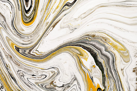 Mixture of acrylic paints. Modern artwork. Yellow and black mixed acrylic paints. Liquid marble texture. Applicable for design packaging, labels, business cards, and interactive web backgrounds.