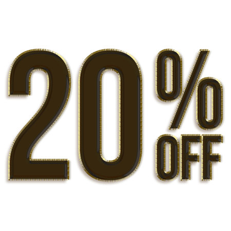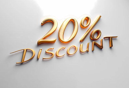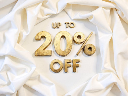 Gold '20% OFF' Promotional Sign on a Gold Background
