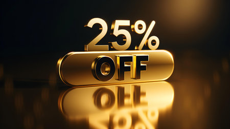 Dark Gold '25% OFF' Promotional Sign on a Dark Gold Background with Copy Space
