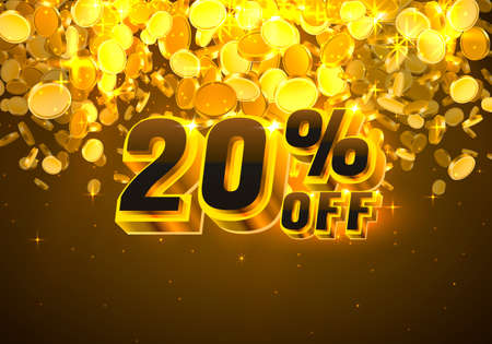 Sale 20 off banner, promotion discount flyer, Big win golden coins. Vector