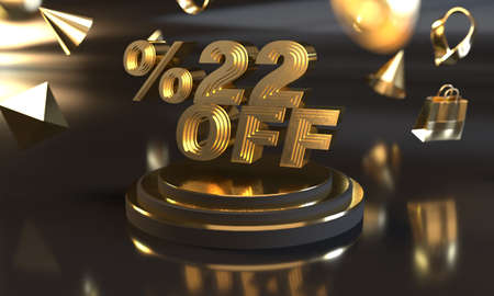 Discount off 22 above triple gold pedestal with dark background with shopping elements
