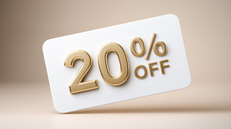 a gold twenty percent off promotion against a white textured background, perfect for advertising sales and discounts for your business.