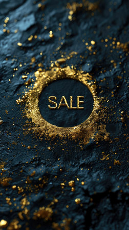 A striking display of gold SALE letters against a backdrop of shimmering confetti, perfect for promotional events, celebrations, and advertisements.