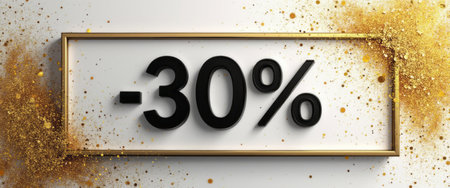 A dazzling discount sign featuring a bold -30 is set against a backdrop of shimmering gold sparkles, creating an eye-catching visual. This vibrant image captures the excitement of sales and promotions, inviting customers to take advantage of the enticing offer.