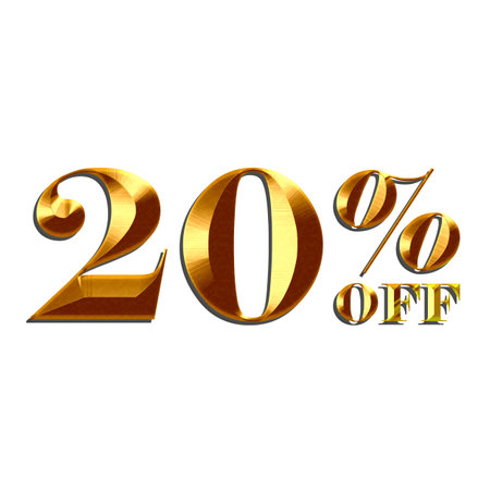 20 Percent Off Sale. 20% percent of. Special offer discount. gold number 20% 3d rendering. sign for marketing, sales, discounts, promotions, financial, business, banner. 3d Golden number