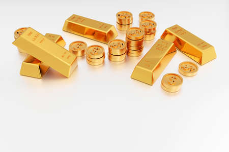 Stack of gold coin and gold bars or gold ingot, banking and financial concept, 3d render