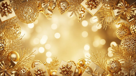 Refined Christmas background highlighting gold ornaments and clean composition.