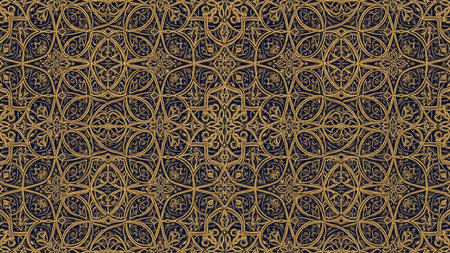 Interlacing abstract ornament in the medieval, romanesque style. Seamless pattern, backgroundin gold and black. ector illustration.