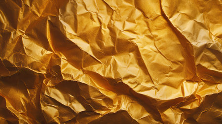 A captivating close-up of shimmering gold foil texture featuring intricate wrinkles and creases, perfect for enhancing creative backgrounds and artistic projects.