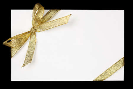 Festive celebration invitation background with golden glitter paper backgrounds and golden bow and ribbon. Photo with copy blank space.