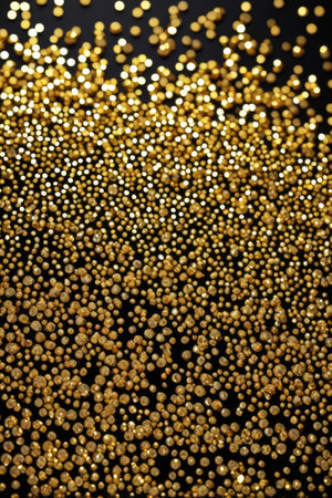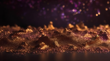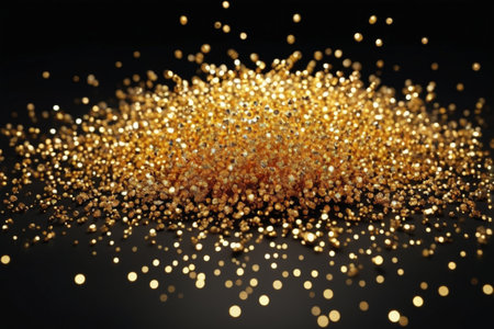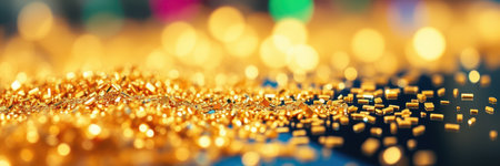 This captivating image showcases sparkling golden glitter particles elegantly scattered on a surface, creating a magical atmosphere ideal for festive celebrations and creative projects.