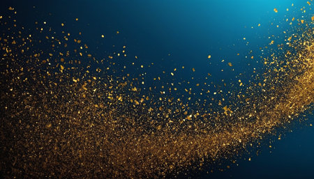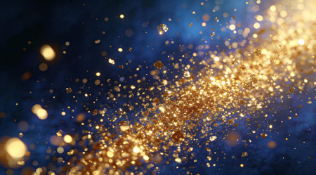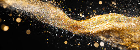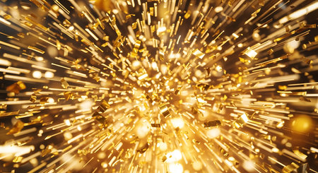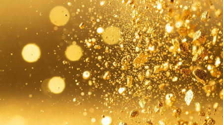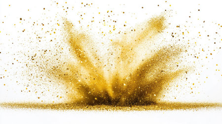 A stunning explosion of elegant golden glitter dust creates a vibrant and dynamic backdrop, perfect for festive celebrations or artistic designs.