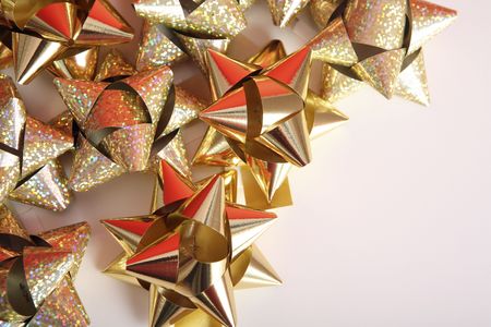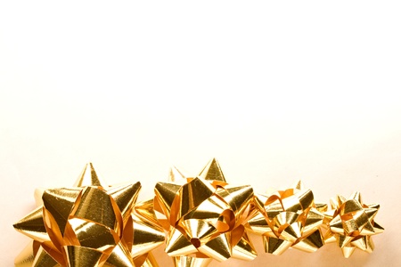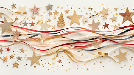 Festive Golden Stars and Ribbons on White Background for Holiday Celebrations