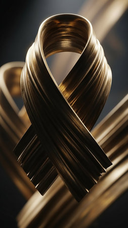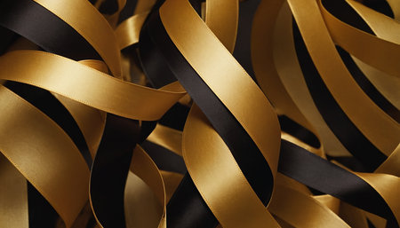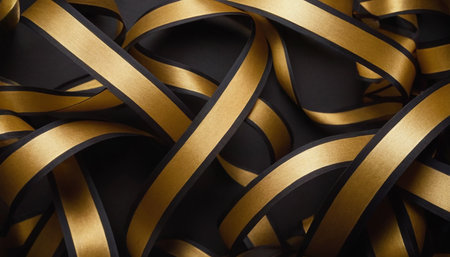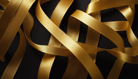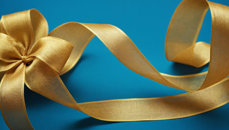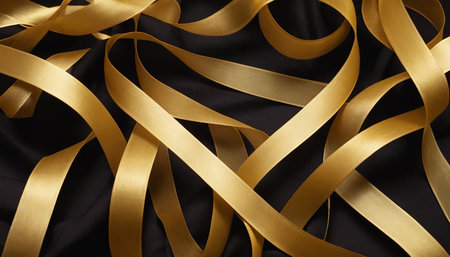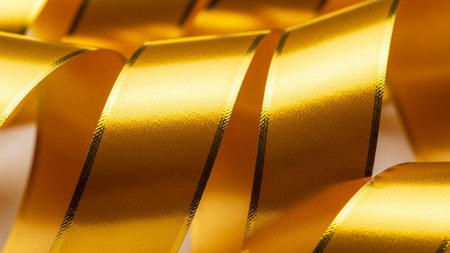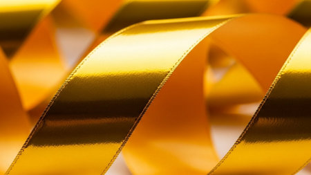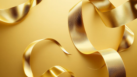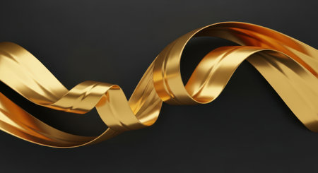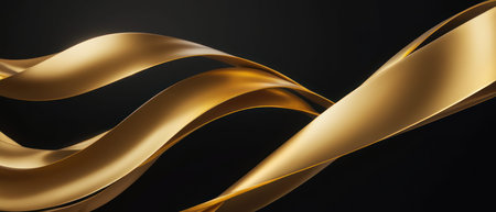 This stunning image features a golden ribbon twisting beautifully, set against a dark background. The rich texture and radiant shine create an atmosphere of elegance and luxury.