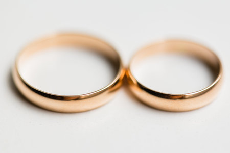 Golden wedding rings newlyweds close-up