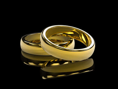 Two golden wedding rings on black background