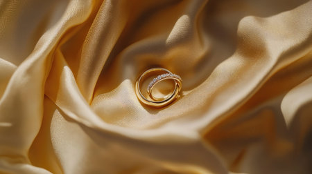 Wedding rings, on a golden fabric background
