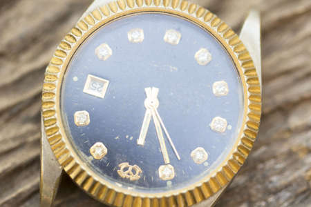 Wristwatch on a wooden background. Close-up. Selective focus.