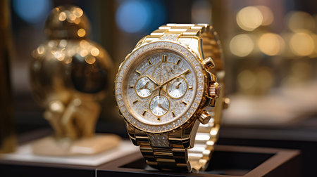 A luxurious diamond-encrusted watch on display in a high-end jewelry store