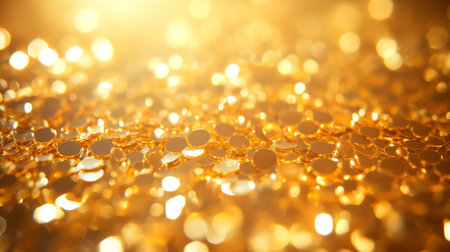 AI Generated. Abstract shiny gold sequins background with bokeh lighting, macro