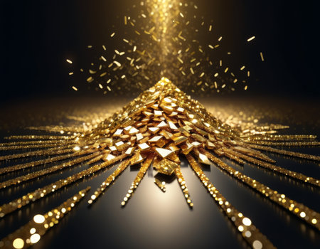 A striking arrangement of gold bars illuminated by sparkles, creating a luxurious and festive mood. Perfect for celebrating special occasions or themes of wealth and prosperity.