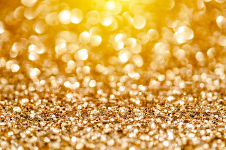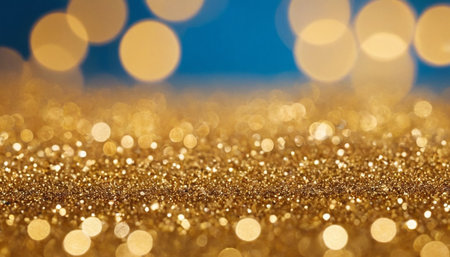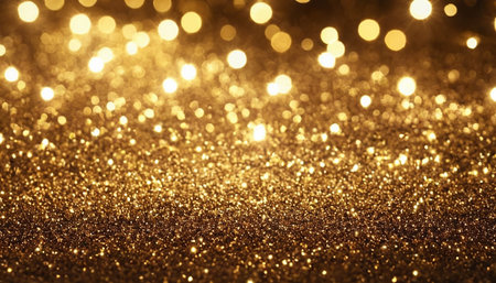 Golden glitter texture creates a festive bokeh background, perfect for christmas, party, or celebration designs