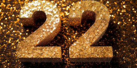 The number 22 stands out against a background of dazzling gold glitter, ideal for festive designs.