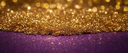 Golden glitter on a purple background. Festive background for your design.