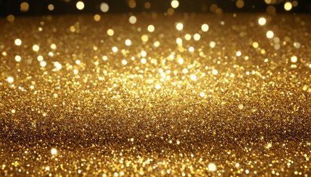A dazzling expanse of golden glitter shimmers under soft light, creating a luxurious and festive atmosphere. This captivating scene is perfect for adding a touch of glamour to any project, evoking feelings of celebration and joy.