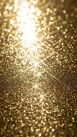 Captivating golden glitter background featuring a soft bokeh effect, perfect for adding a touch of elegance and sparkle to various creative projects.