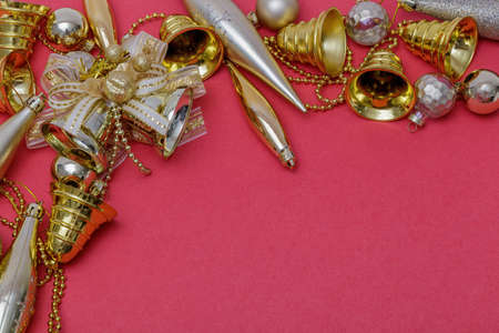Golden Christmas decoration on bokeh background with copy space for text