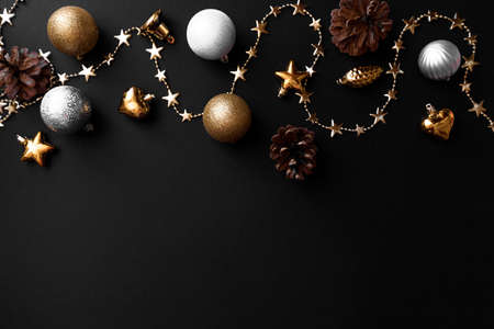 new year gifts and decorations on black background top view- Image
