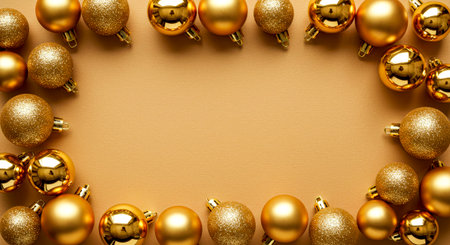 A frame of golden balls is a ready-made New Year's banner for text.