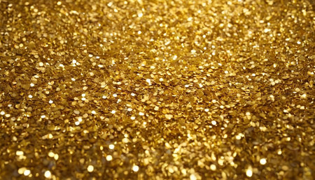 Sparkling gold glitter texture, shimmering metallic background.