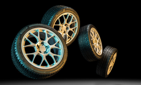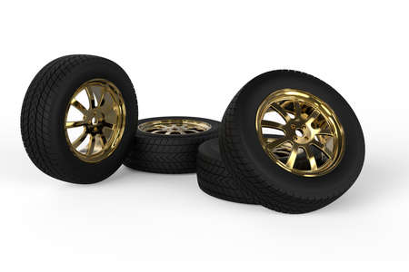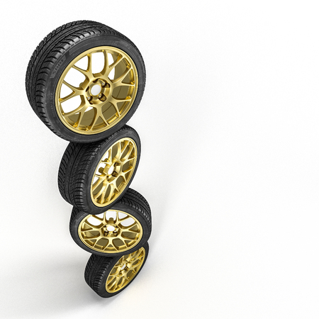Gold alloy wheel isolated on white background. 3d render illustration.