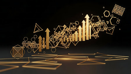 An artistic representation with golden arrows pointing upward, symbolizing ambition and success. The abstract design evokes feelings of progress and innovation.