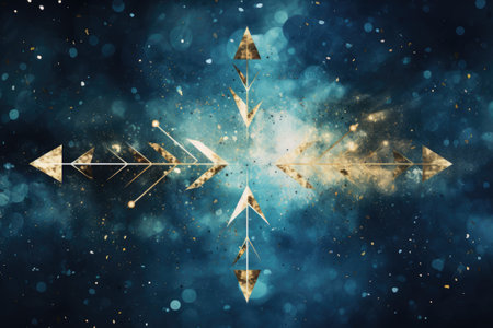 A captivating golden arrow symbolizing growth and progress amidst sparkling effects, perfect for motivational and inspirational themes in various creative projects.