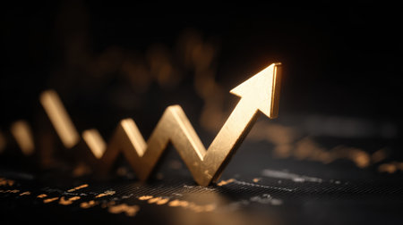 Golden arrow representing growth and success, symbolizing financial progress and upward trends in business. image captures essence of achievement and prosperity