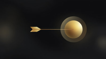 This image features a golden arrow targeting a circular shape against a dark background, creating a modern abstract visual ideal for design projects and creative concepts.