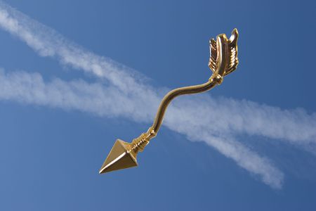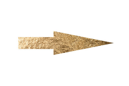 Digital image of the golden arrow on the white background, high quality, high resolution