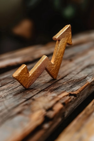 This image features a golden arrow symbol resting on a wooden surface, embodying concepts of growth, success, and positive direction in various contexts.